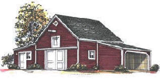 The Maple Leaf Barn is a 18'x24' one-bay garage with pull-down stairs to a full Loft. It has a 12'x12' open Shelter on the right for your garden tools, fire wood or bikes, and a 12'x24' workshop on the other side. An 8' wide door at the back of the workshop lets you pull your tractor or antique car right in. Overall height is 21'-8" Enclosed area is 720 sq. ft. The Shelter is 144 sq. ft. The Loft is 380 sq. ft.