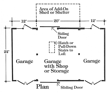 or small boats. It has three 12'x24' parking bays and a big