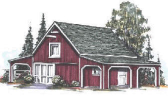 pole-barn has a drive-through bay for parking with 9' high