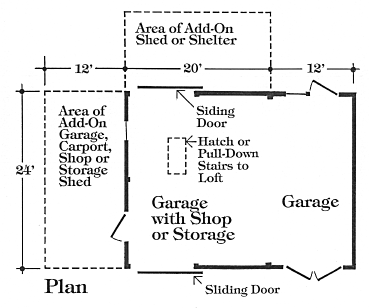 is a 32'x24' two-bay garage with pull-down stairs to a full