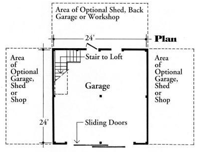 Garage Plan Set has a 24'x24', two-car main garage with stairs up to a