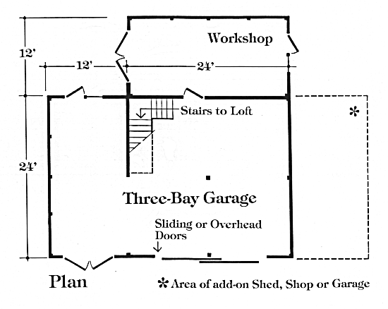 has three 12'x24' parking bays, stairs to a full Loft and a
