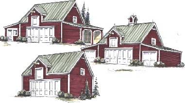 get their approval before you start construction. Material Lists: Because these buildings were designed to be built with any of a variety of exterior finishes and with optional layouts, material lists can not be prepared in advance. Many home centers and lumber yards will provide you with a computerized material list and prices, from the construction plans, after you've chosen the exterior materials and options that you want. Options and Optional Finishes: Sources for cupolas, weathervanes, barn and carriage house doors, rolling track hardware, stall partitions, post mounts, post protectors and special construction items can be found here: Barn Building Resources.