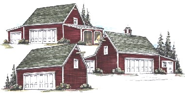 Construction & Finishes: These garages, sheds and barns are designed to provide you with inexpensive parking and storage space, the look of traditional country outbuildings and the best quality modern construction. All of the materials shown on the website illustrations are just suggestions. These buildings can be constructed with any of a variety of exterior finishes and details so that they can match your home or other buildings on your property. The plans are all designed for post-frame construction. That's the modern version of "pole-barn" construction, using pressure treated 6x6 posts as the main structure and post hole or concrete pier footings. Post-frame construction eliminates the need for full foundations and can save you as much as 20% of the cost of construction by reducing the amount of site work, excavation and concrete needed. Pressure treated posts are rated for years of use. However, their life is affected by the moisture and mineral content of your soil. Commercial plastic-sleeve post protectors and concrete post bases will extend the life of your building. You'll find information on some of the most popular ones here: Barn Building Resources. The drawings include details for plastic sleeve post protectors and for optional concrete pier footings which keep all wood away from the ground. Plastic sleeve post protectors or concrete pier footings are recommended for moist areas, areas of clay soil and, in all locations, for maximum building life. Loft floor construction is by conventional wood joists. Roofs are framed with wood rafters, not space-wasting trusses, to allow full use of loft storage space. Loft gable-end walls are framed with wood studs. Grade level floors can be gravel, tamped earth, or concrete. Concrete floor slabs must be poured after the posts are standing. These buildings can't be built on existing slabs. Do-it-yourself?: The drawings are intended for experienced builders and use standard methods, abbreviations and symbols. They do not include step-by-step building directions. These are fairly large buildings and are not recommended for first-time builders. You can find qualified post-frame builders in your area here: National Frame Builders Association